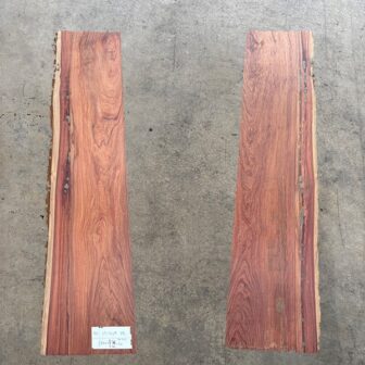 サイズ1800×末400・中390・元400×53 ㎜産地西アフリカ特徴片耳 表面キズあり価格70,000円(税込・送料別)赤色ないし濃赤色で、濃厚な桃色の縞が出る。辺材…