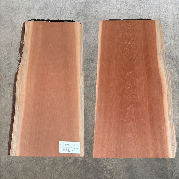 淡色、心材は初め桃色で、時間の経過とともに赤褐色に変化する。