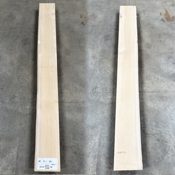全体に淡い灰黄色~淡い灰褐色で、辺心材の境目は不明瞭。