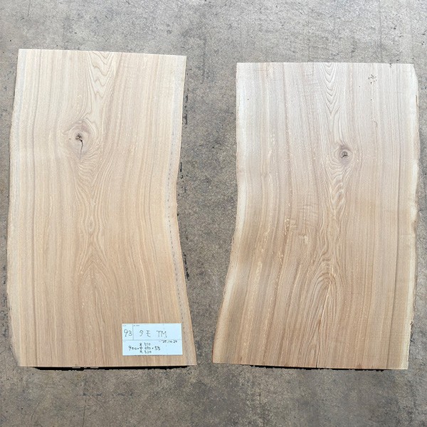 淡い黄白色、心材は淡い灰褐色で、肌目は粗く、時に縮杢などのしい杢が現れる。