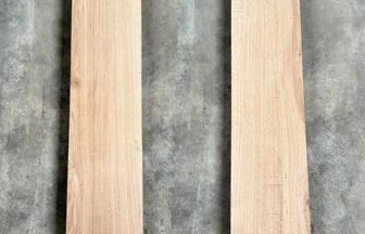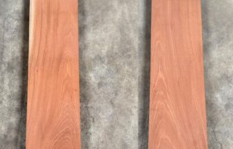 境目は明瞭で辺材は淡い黄白色、心材は鮮やかな赤褐色を呈する。