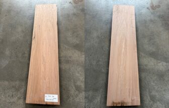 心材は淡い灰褐色~灰紫色で時間がたつと赤褐色に変色する。