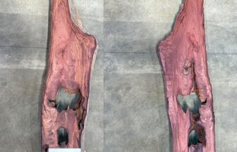 黄白色~桃色、心材は淡い赤褐色~濃い赤褐色で辺心材の区別は明瞭。