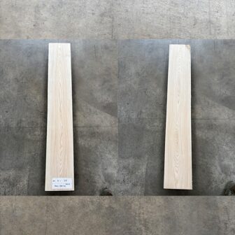 サイズ1400×240×31 ㎜産地北海道特徴価格19,000円(税込・送料別)全体に淡い灰黄色~淡い灰褐色で、辺心材の境目は不明瞭。木理は交錯し、肌目も粗いが、板…